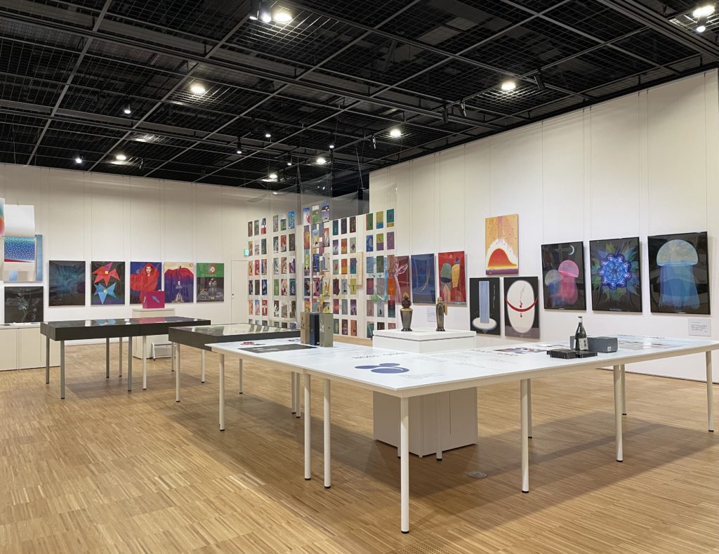 本展は、松井桂三学科長が手がけた圧巻のポスターや、平面と立体を軽快に